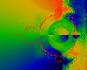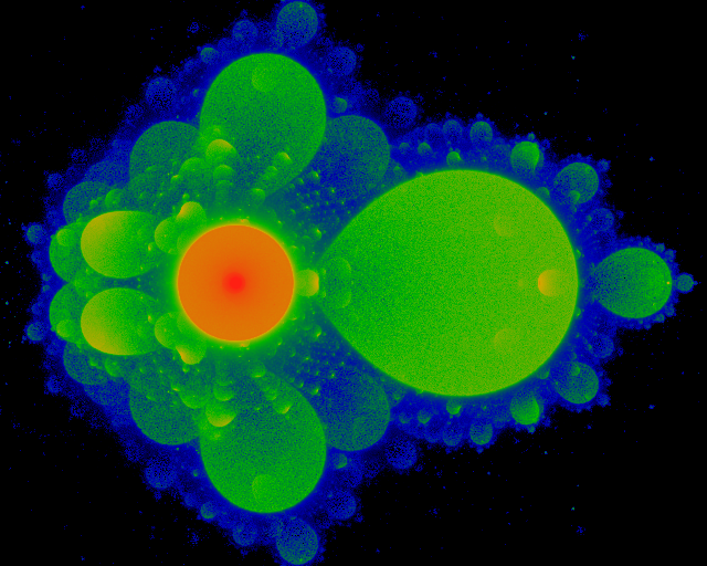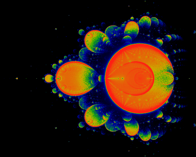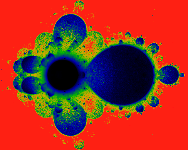 Lyapunov exponenet. All non-black regions are replusive, with red