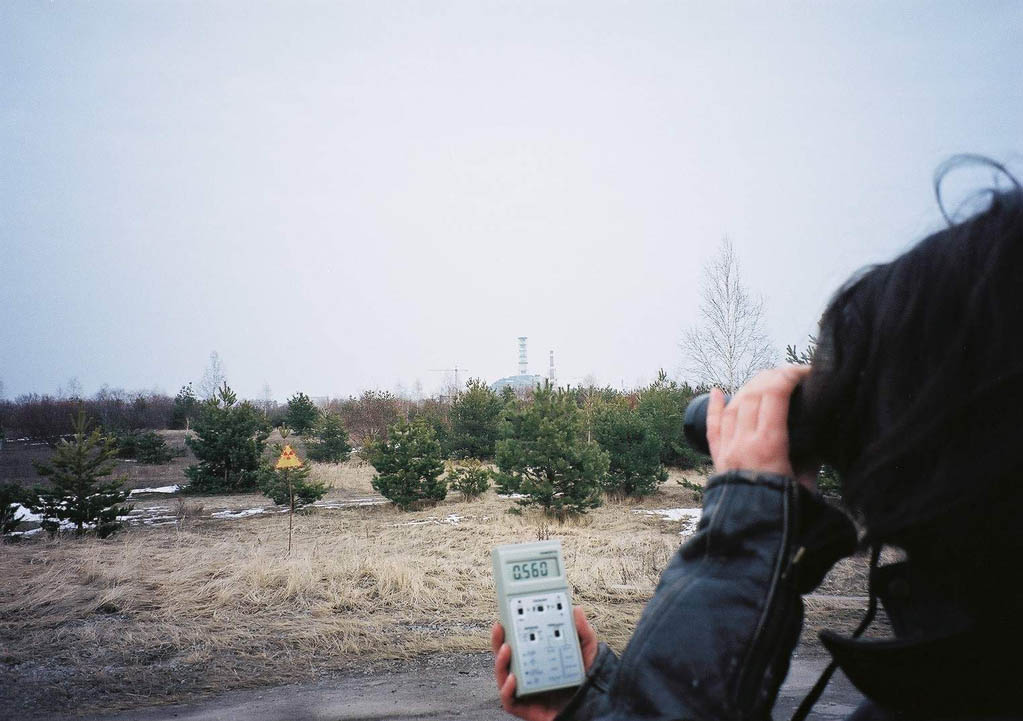Usually, beeping of dosimeter speed me up and I pass this part of road as fast as road condition allow. The place in front of me called red or magic wood. In 1986 this wood has been red with radiation and then they cut it off and left there and bury under 1 meter of earth. As you can see, on asphalt things not bad, but if I step 10 meters forward, my dosimeter will run out of scale, if I walk few hundred meters towards reactor, then I will find 3 roengen. If I keep walking all the way to reactor, then at the end of a journey I will glow in a dark. May be this is why they call it a magic wood. this sort of a magic when one walk in in a biker leather and coming out like a knight in a shinning armour.