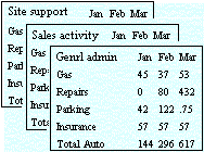 3 dimensional breakdown by type, by month, 3 dimensions never fit on paper. You get a cube, or stack of squares, such as the monthly budgets for many departments, or combined budget for many product lines. It becomes more convenient to browse with a computer. A hypercube is any cube of more than three dimensions. You get a stack of cubes. Requires computer to read and navigate. Drill-down means that when you double-click, the row expands like Windows Explorer but showing breakdowns of the dollars instead of file listings. What is Drill-Across? ...read and play with these vendor's views/demos